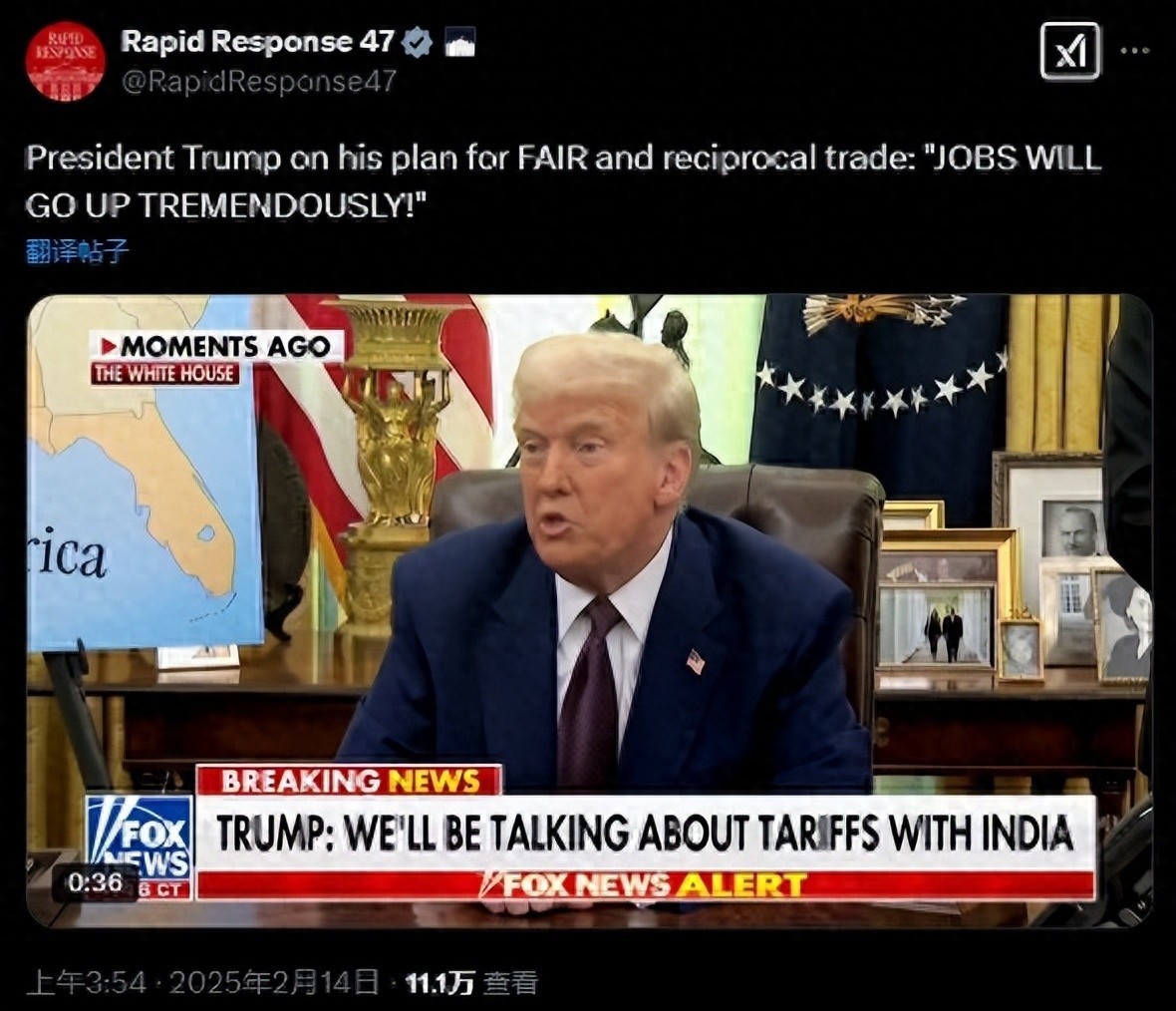 特朗普13日在白宫宣布将实施“对等关税” 视频截图对等关税是特朗普为解决美国贸易赤字以及他声称的美国商品受到的“不公平待遇”而采取的最广泛行动。根据白宫发布信息,新的关税将针对每个国家量身定制,旨在抵消各国对美关税,以及各国“以不公平补贴、监管、增值税、汇率、松懈的知识产权保护和其他形式”实施的非关税贸易壁垒。在此之前,特朗普已经宣布对中国商品加征10%的关税,对加拿大和墨西哥征收25%的关税(已推迟至3月1日),并计划下个月对所有进口钢铁和铝征收25%的关税。“为了公平起见,我决定征收对等关税,也就是说,任何国家向美国征收的关税,我都会对等征收,”特朗普在白宫椭圆形办公室表示,“在几乎所有情况下,他们向我们收取的费用都远远高于我们向他们收取的费用,但这样的日子已经一去不复返了。”值得一提的是,几个小时后,印度总理莫迪抵达白宫与特朗普举行会晤。尽管如此,特朗普对印度批评起来一点不留情面,称“印度的关税几乎是全球最高的,在印度做生意非常困难”。此外,据一名白宫官员透露,特朗普还向记者指出,他认为日本和韩国正在利用美国。该官员认为,日本和韩国预计也将成为特朗普新举措的目标。对于欧盟、加拿大等盟友,特朗普表示:“我们都爱欧洲,喜欢欧洲国家,但是欧盟在贸易方面,对我们采取了绝对残酷的政策……加拿大在贸易方面对我们非常糟糕,现在加拿大必须开始付出代价了。”特朗普提到,尽管在第一任期时,为了与三星竞争,他给予苹果公司关税豁免,但最新的对等关税方案“适用于所有企业”。他告诉记者:“苹果公司很多产品都是在中国生产的,所以我这么做了,否则不公平,现在这适用于所有人。”特朗普坚称,他的关税政策将在美国创造“大量就业机会,最终使商品价格保持不变甚至下降”,并表示“我们将拥有一个非常有活力的国家”。然而,多数美媒和美国分析人士持不同意见,对于美国通胀、经济表现以及全球影响力感到担忧和悲观。彭博社称,对等关税政策标志着美国贸易方式的重大变化,并将侵蚀美国在二战后塑造的全球贸易体系的基本原则之一。作为世界最大经济体,美国长期以来一直以市场准入作为激励手段,将开放视为经济优势。CNN援引美国智库彼得森国际经济研究所的研究称,如果特朗普继续对墨西哥和加拿大征收25%的关税,那么对中国、墨西哥和加拿大商品征收进口税的直接成本总额将转嫁到美国消费者身上,相当于普通美国家庭每年税收增加1200多美元。若实施对等关税,这一数据可能会继续增加。美联社提醒称,针对特朗普的行为,中国已经实施了反制措施,欧盟、加拿大和墨西哥已经准备好反制措施,“这都会对美国经济造成打击”。富国银行一份报告显示,关税可能会损害美国今年的经济增长,继续推高美国的通货膨胀率。数据显示,美国1月份月度消费者价格指数上涨3%,为2023年8月以来的最大涨幅。《南华早报》称,这是一个警告信号,表明美国政府此前在抑制通胀方面取得的进展已经停滞,甚至出现逆转。美国智库卡托研究所的贸易专家斯科特·林西科姆指出,美国的平均关税确实较低,但特朗普只是为了提高进口税,而不是追求他口中的公平,因为美国也有限制外国产品的监管限制。他说:“这必然意味着更高的关税,从而增加美国消费者和制造商需缴纳的税款。”还有美国专家担忧地表示,在中美地缘竞争紧张之际,特朗普的贸易保护主义做法,将削弱美国的投资竞争力,继而使美国的就业面临风险。美国智库卡托研究所的专家克拉克·帕卡德告诉《南华早报》,特朗普的计划首先是“一场行政噩梦”,因为白宫贸易官员需要分析来自数十个国家的数千种产品。同时,从更广泛的角度来看,特朗普层层的关税威胁破坏了外企在美国投资的理由。“美国和世界各地的投资都依赖于确定性,而当我们的贸易政策反复无常时,就会引发各种不确定性。”帕卡德指出,“我认为,随着时间的推移,你会看到在美投资开始回落并萎缩。”美国智库战略与国际研究中心专家菲利普·勒克持相同看法。他还警告称,从长远来看,特朗普的“美国堡垒战略”可能会适得其反,破坏他的许多目标,特别是针对中国的目标。他解释说,特朗普的关税威胁将激怒美国的盟友和合作伙伴,“这将分散对涉华关键问题的注意力”。面对特朗普政府的“关税大棒”,中国迅速对美国采取了“以牙还牙”的贸易反制。就在美方10%关税正式生效当天(2月4日),中方一口气打出五记组合拳予以反制:对部分美国进口商品加征关税、将两家美企列入不可靠实体清单、对钨、碲等相关物项实施出口管制、在世贸组织起诉以及对谷歌发起反垄断调查。多家外媒认为,相比于美方全面加税的举措,中方反击“似乎是相当克制的”,经过精心考量,旨在向美国传递某种信号,同时又不会造成太大损害,这给双方未来谈判留下了时间和空间。2月10日,外交部发言人郭嘉昆就特朗普关税威胁回应指出:“我要强调的是,搞保护主义没有出路,贸易战、关税战没有赢家。”来源:观察者网